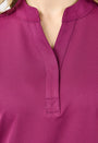 Cuello mandarín con botones ocultos para un toque minimalista.